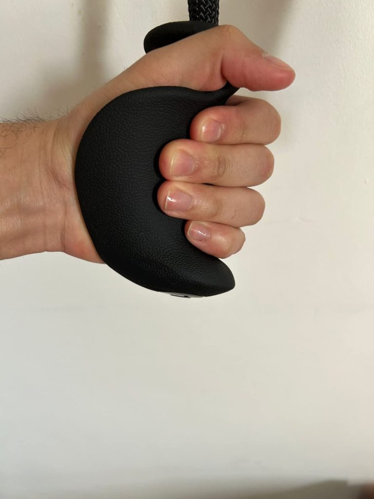 Poignée de qualité, idéale pour renforcer les triceps, elle est ergonomique et possède une bonne prise en main. L'anneau de fixation est renforcé. Mon mari l'utilise tout les jours et pas de soucis pour le moment.