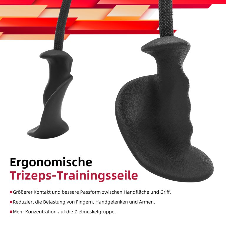 - Ergonomisches Trainingsseil Basiert auf ergonomischen Prinzipien, bietet durch sein einzigartiges Design eine größere Kontaktfläche zwischen Handfläche und Griff für volle Handunterstützung. Richtige Griffhaltung minimiert Belastung von Fingern, Handgelenk und Arm, reduziert Verletzungsrisiko. Handfläche bleibt ergonomisch positioniert für bessere Fokussierung auf Zielmuskelgruppen.