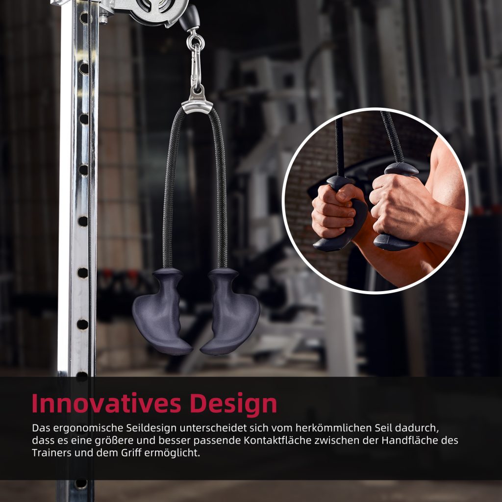 Vielseitig einsetzbar für Latzug, Kabelüberkreuzung und andere Seilzugsysteme, leicht zu transportieren und geeignet für professionelle Fitnessgeräte oder Heimtraining.