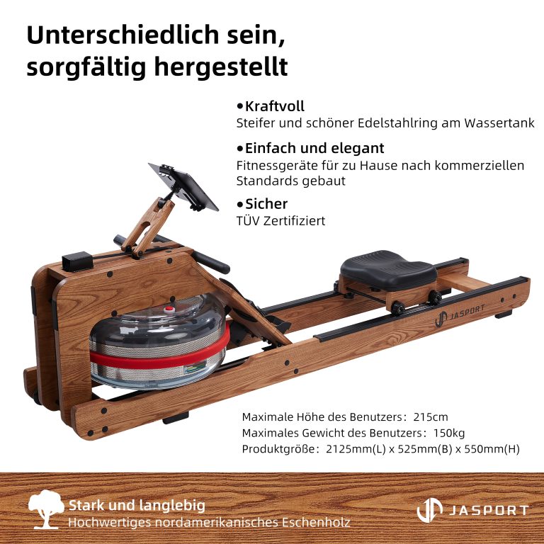 - Hochwertiges Eschenholz – Dieses Rudergerät ist aus massivem nordamerikanischem Eschenholz mit deutlicher Maserung gefertigt. Es zeichnet sich durch eine beeindruckende Härte von 1320 auf der Janka-Skala aus, was es langlebiger als Buchen- oder Kiefernholz macht. Das neu gestaltete Wasserwiderstandssystem, verstärkt durch Edelstahlringe, verbessert nicht nur die Haltbarkeit des Wassertanks, sondern verleiht dem Rudergerät auch ein kraftvolles Gefühl. Dies trägt zur Motivation der Trainierenden bei und optimiert ihr Training.
