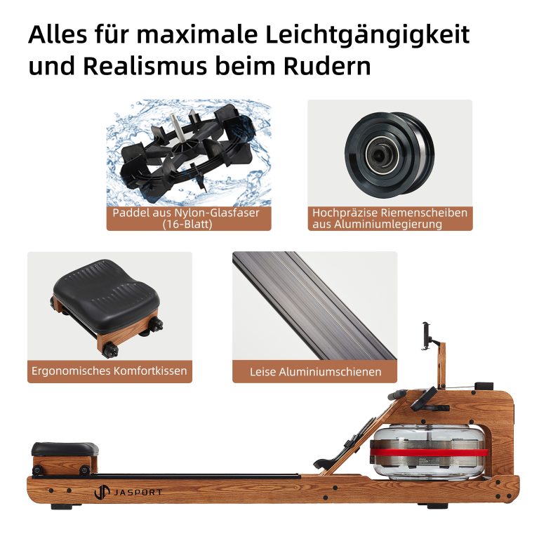 - Erstklassige Komponenten für realistisches Rudern – Qualität steht im Mittelpunkt unseres Rudergeräts. Das patentierte 16-Blatt-Paddel aus Nylon-Glasfaser mit Aluminiumschaft und präziser Hauptrolle bietet einen gleichmäßigen, realistischen Wasserwiderstand. Der ergonomische Sitz gleitet geräuschlos auf einer Vollaluminiumschiene und ermöglicht ein komfortables Training, das weder die Familie noch die Nachbarn stört. Genießen Sie ein authentisches Rudererlebnis.