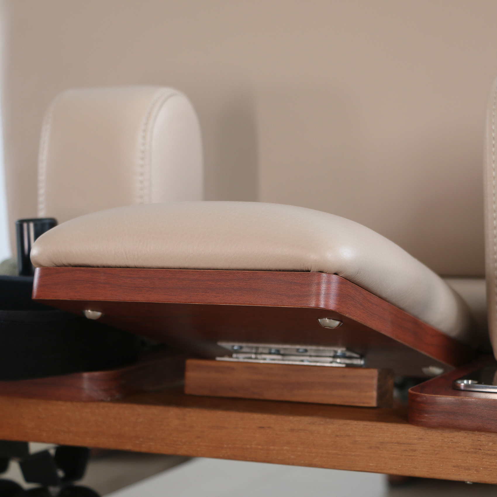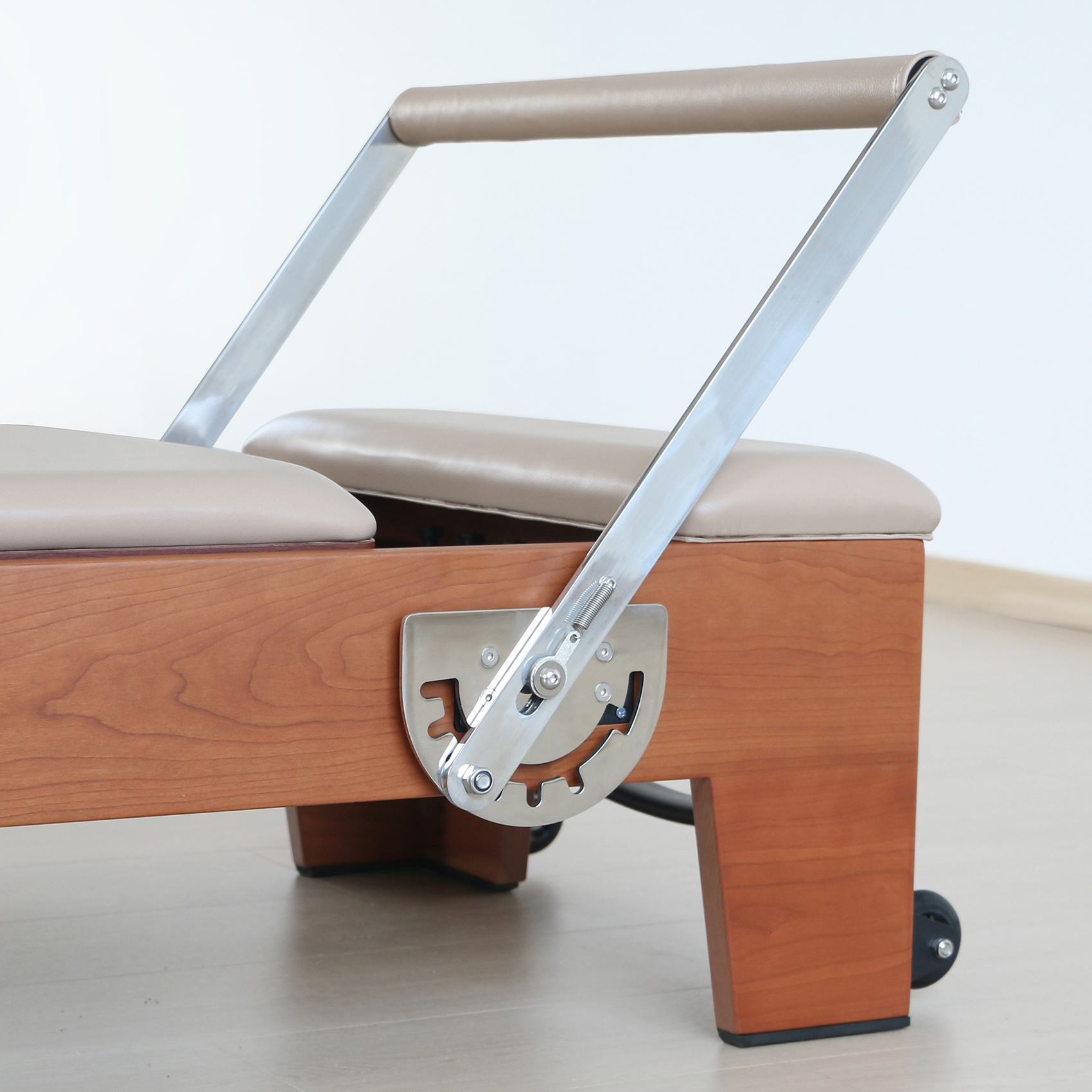 Die hochwertige Maserung des aus Nordamerika importierten Spezial-Kirschholzes verleiht dem Gerät außergewöhnliche Stabilität sowie ein modernes, stilvolles Erscheinungsbild. Ob für anspruchsvolles Training zu Hause oder den intensiven Einsatz im professionellen Pilates-Studio – es bietet jederzeit eine zuverlässige Leistung auf Profi-Niveau.