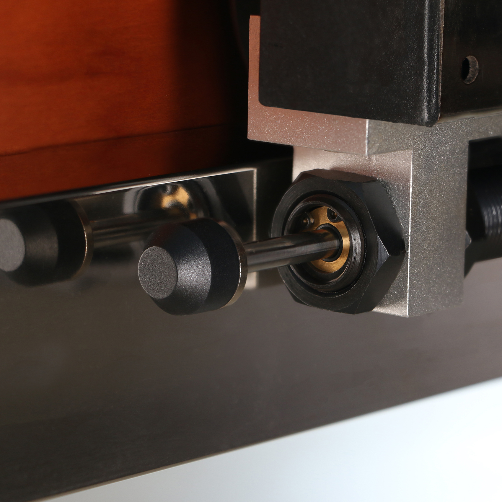 Robuste Konstruktion aus nordamerikanischem Kirschholz mit Edelstahl- und Aluminiumteilen – elegant, langlebig und stabil.