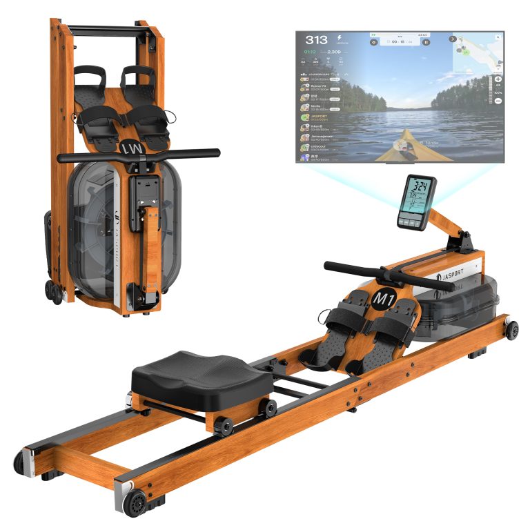 Das JASPORT M1 besteht aus FSC-zertifiziertem Gummibaumholz und kombiniert nachhaltige Materialien mit hoher Stabilität und natürlicher Ästhetik. Es fügt sich harmonisch in jede Wohnumgebung ein. - Realistisches Rudergefühl durch Wasserwiderstand