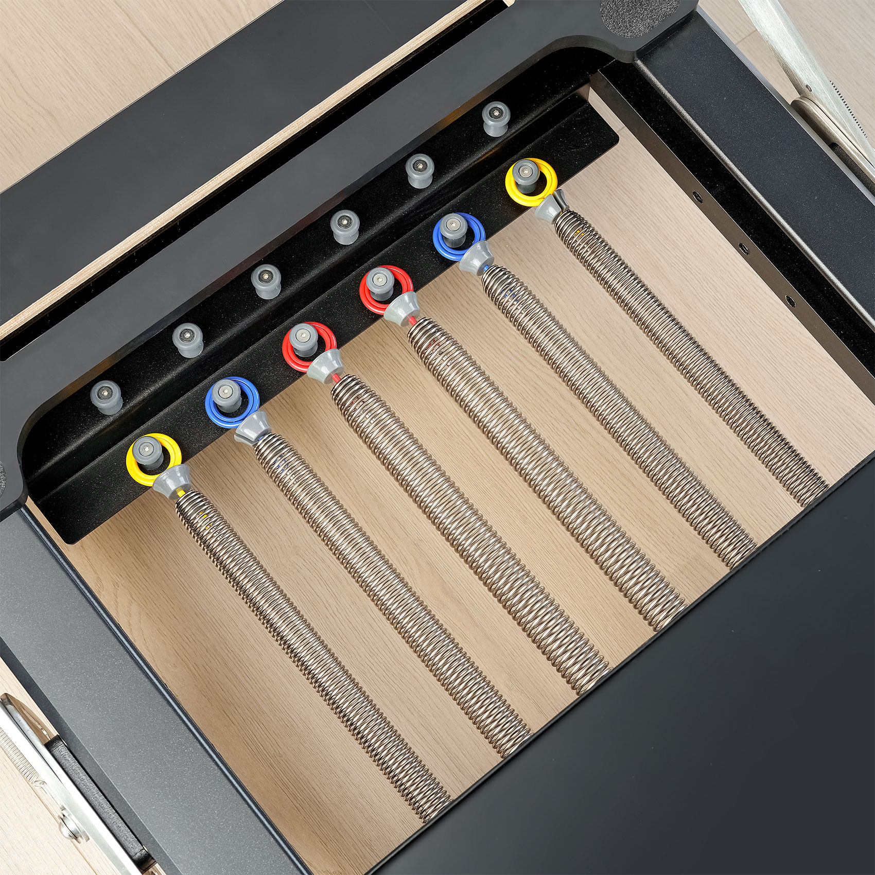 Der robuste Aluminiumrahmen bietet hervorragende Stabilität und Langlebigkeit. Mit einer maximalen Belastbarkeit von bis zu 400 kg gewährleistet das Gerät ein sicheres und stabiles Training. Ob für hochwertiges Training zu Hause oder den intensiven Einsatz im professionellen Pilates-Studio – es überzeugt durch eine zuverlässige Performance auf Profi-Niveau.