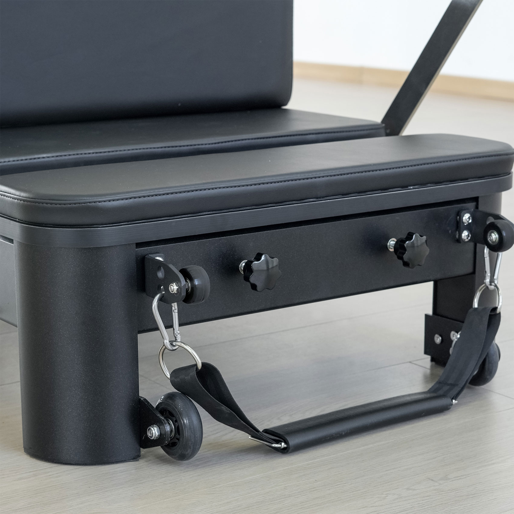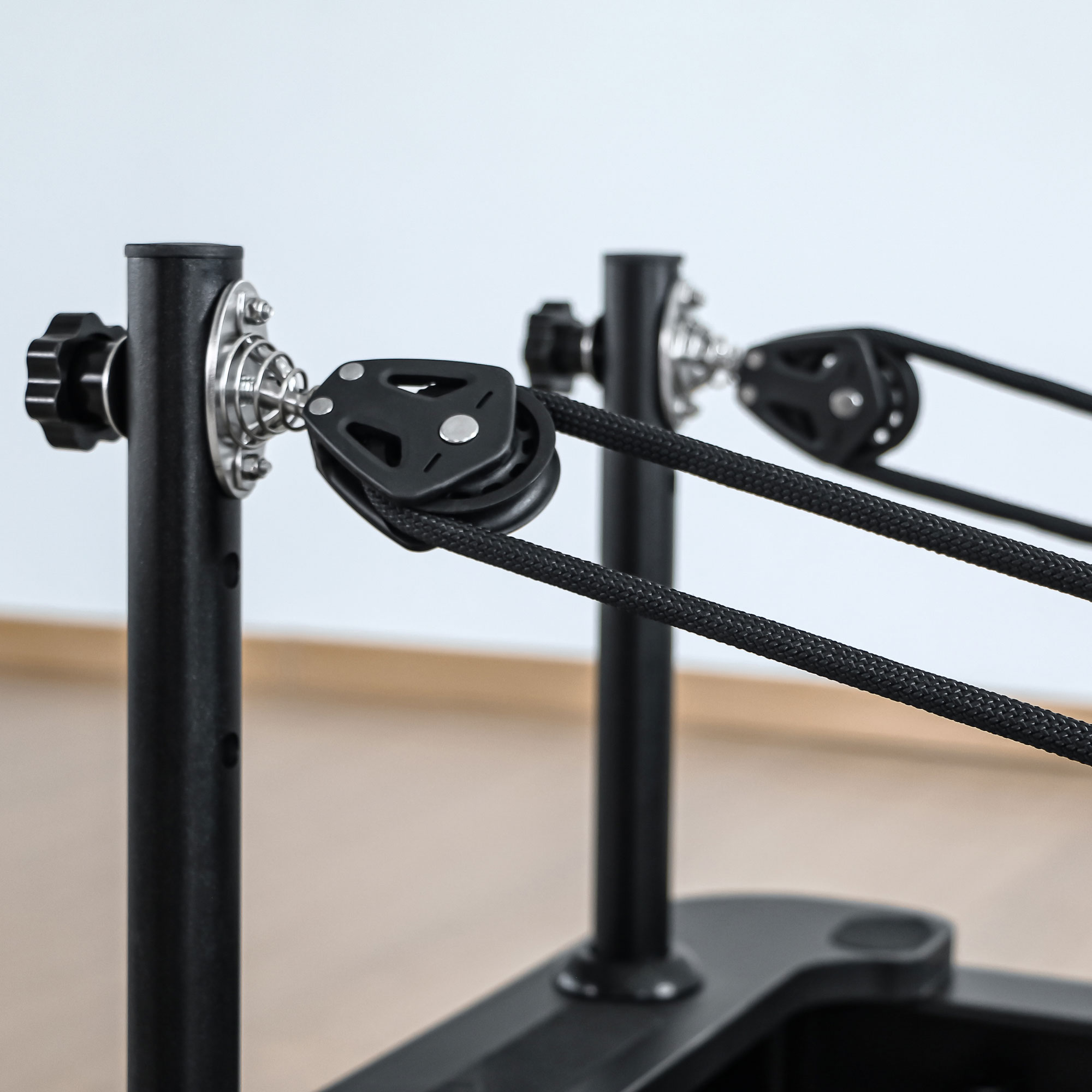 Die verstellbaren Umlenkrollen ermöglichen eine schnelle Anpassung der Seilzugposition und sorgen für fließende Bewegungen sowie gleichmäßige Spannung. Ob beim Training zu Hause oder im professionellen Pilates-Studio – Sie genießen jederzeit ein stabiles und professionelles Trainingserlebnis.