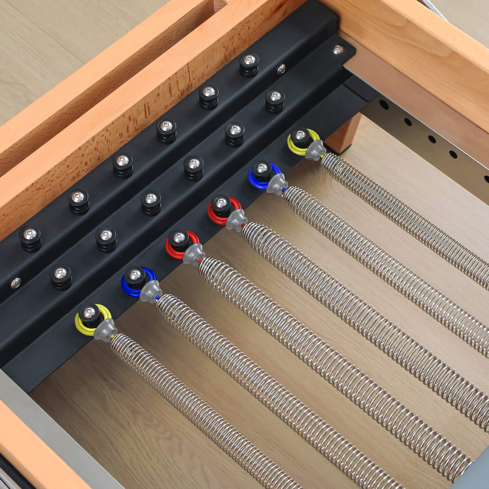 Die natürliche Buchenholzmaserung verleiht dem Gerät außergewöhnliche Stärke und ein modernes, stilvolles Erscheinungsbild. Egal ob für hochwertiges Training zu Hause oder für den intensiven Einsatz im professionellen Pilates-Studio – es bietet jederzeit eine zuverlässige Leistung auf Profi-Niveau.