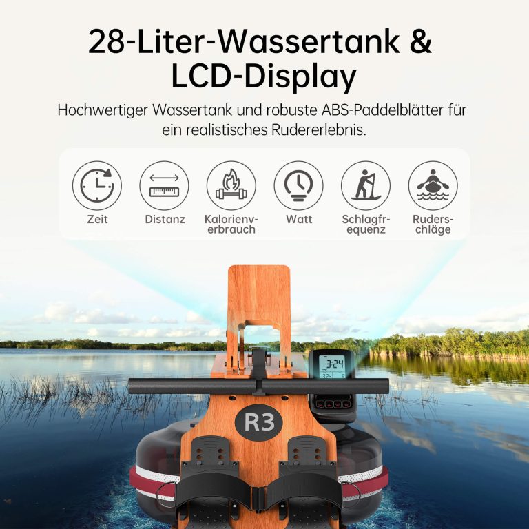 • 28L Wassertank – Einstellbarer Widerstand für ein realistisches Rudererlebnis und ein effektives Ganzkörpertraining.
