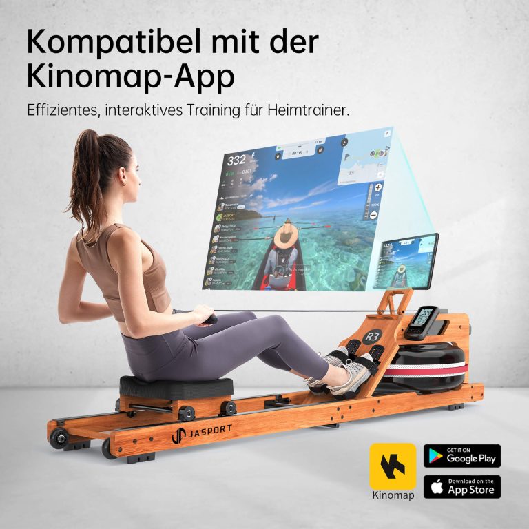 • Kompatibel mit der Kinomap-App sowie einem kabellosen Herzfrequenzmessgerät Verbinden Sie den JASPORT R3 mit der Kinomap-App, um die Anforderungen von Heimtrainern an effizientes, interaktives und vielseitiges Training zu erfüllen. Unterstützt werden kabellose Herzfrequenzgeräte mit 5,3 kHz, sodass Sie Ihre Herzfrequenz in Echtzeit verfolgen können – ideal für Technikliebhaber und Fitnessbegeisterte.
