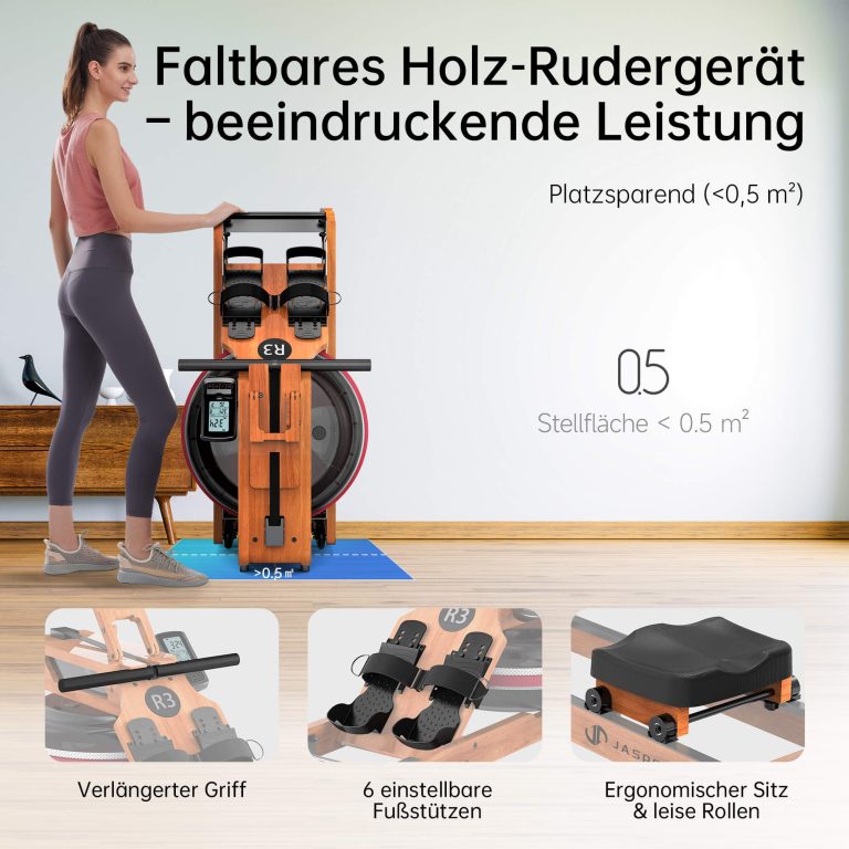 • 97 % vormontiert – einfach aufstellen und sofort loslegen Das JASPORT R3 Rudergerät wird zu 97 % vormontiert geliefert. Sie müssen das Gerät lediglich entfalten, den Sitz montieren und die passende Wassermenge einfüllen, um sofort mit dem Training zu beginnen – ganz ohne aufwendige Vorbereitung. Der einfache Aufbau ermöglicht Ihnen einen entspannten Start in Ihr Fitnessprogramm.