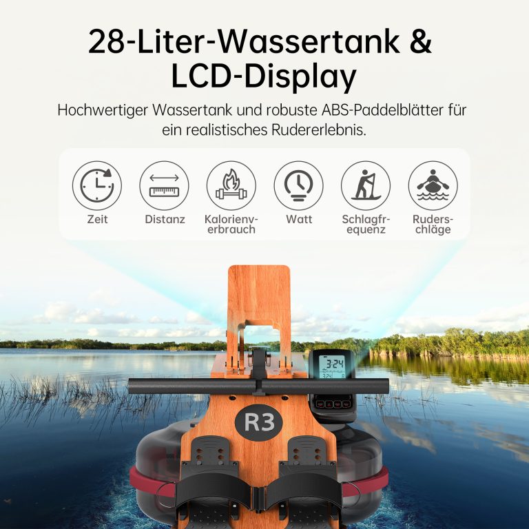 - 28L Wassertank – Einstellbarer Widerstand für ein realistisches Rudererlebnis und ein effektives Ganzkörpertraining.