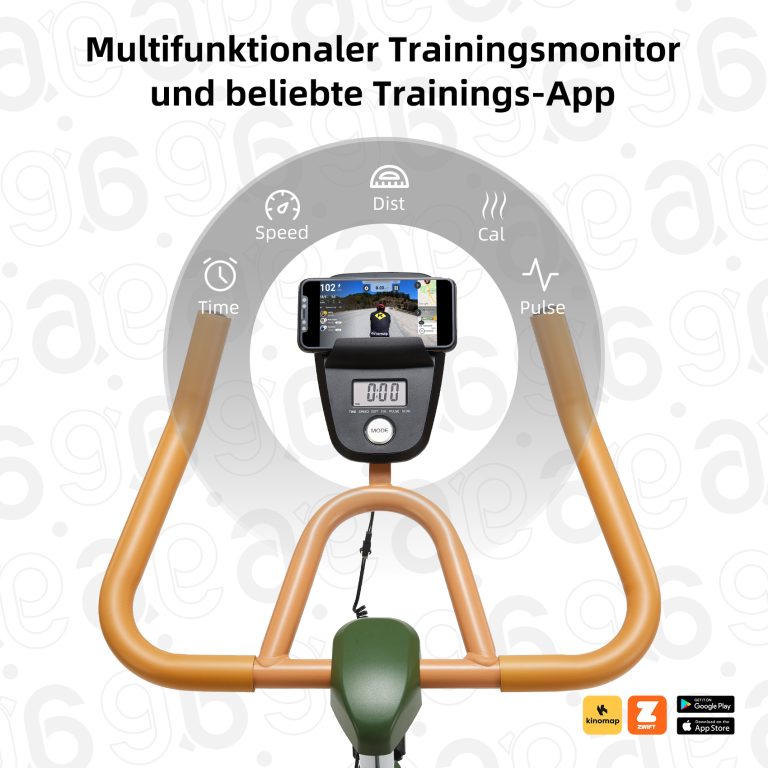- Wissenschaftliches und effektives Training:Ausgestattet mit einem LCD-Display, das in Echtzeit die Zeit, die Geschwindigkeit, die Distanz und andere Daten anzeigt. Kompatibel mit Kinomap und Zwift.