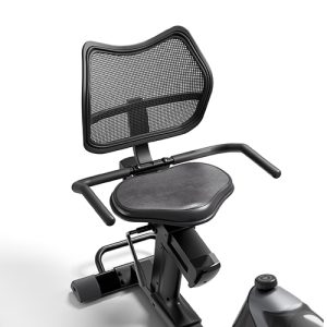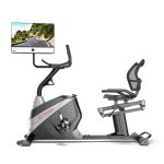 Wechseln Sie mühelos zwischen einer Vielzahl von Kursen wie Radfahren, Dehnen, Krafttraining und mehr durch einfaches Drehen des Bildschirms – alles bequem an einem Ort. - Ergonomisch gestalteter Sitz und Rückenlehne