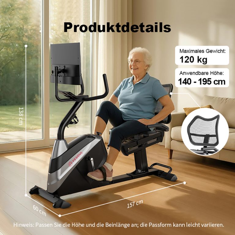 Das ergonomische Design dieses Liegefahrrads sticht wirklich hervor. Es unterstützt meinen Rücken perfekt während des Trainings, sodass ich mich auf meine Fitness konzentrieren kann, ohne mir Sorgen über Unannehmlichkeiten zu machen. Es ist eine großartige Ergänzung zu meiner Routine und hilft mir, aktiv zu bleiben, während ich meine Haltung im Blick behalte!