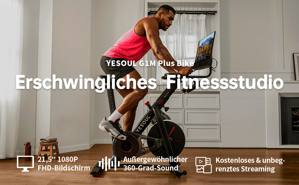 - 21,5-Zoll-1080P-FHD-Display für klare und realistische Bilder, die Ihre Motivation steigern und das Trainingserlebnis wie im Freien oder in einem echten Fitnessstudio wirken lassen. Ideal zum Ansehen von Trainingsvideos oder Streaming-Unterhaltungsprogrammen.