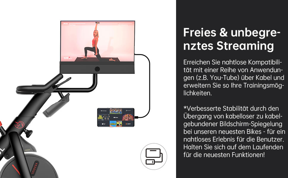 *verbesserte stabilität durch den übergang von kabelloser zu kabelgebundener bildschirm-spiegelung bei unseren neuesten bikes – für ein nahtloses erlebnis für die benutzer. halten sie sich auf dem laufenden für die neuesten funktionen!