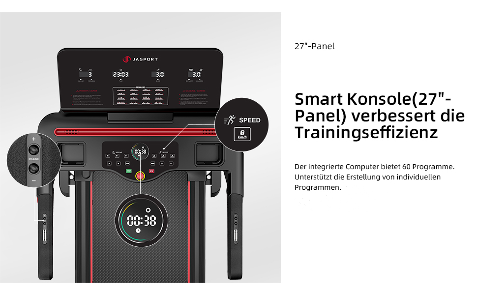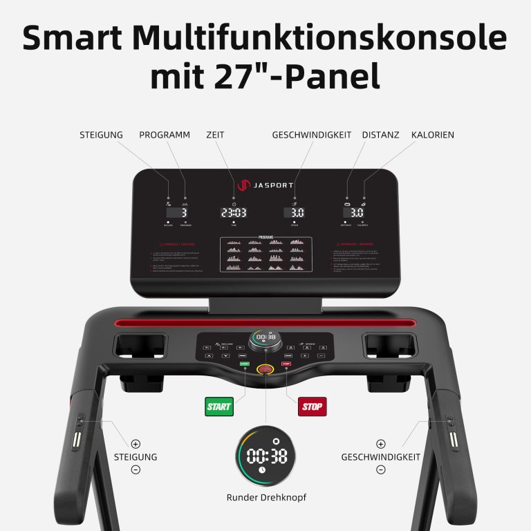 - Optimales Vergnügen und Praktikabilität: Mit einem doppelten Hydraulikzylinder-Falt-Design ermöglicht Ihnen JASPORT, das Laufband leicht und sicher alleine langsam anzuheben oder abzusenken. Mit Hilfe von zwei Rädern können Sie das Laufband nach dem Zusammenklappen mühelos in jede Ecke bewegen. Die Fläche nach dem Zusammenklappen beträgt weniger als 1 Quadratmeter. Zusätzlich bieten wir im ersten und zweiten Jahr kostenlose Ersatzteile an. Ihre Anfragen werden innerhalb von 24 Stunden beantwortet.