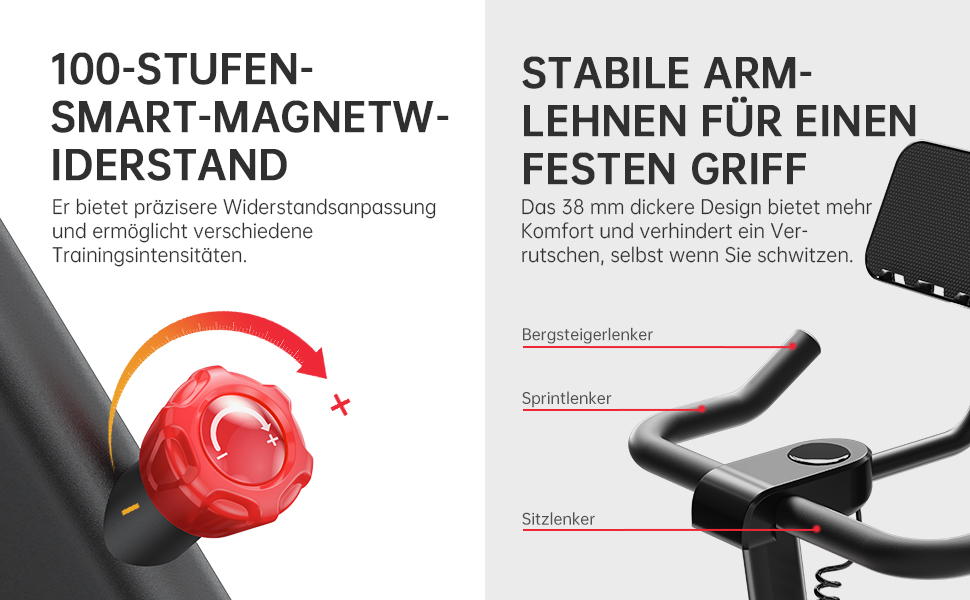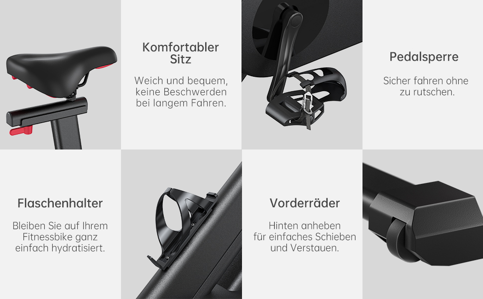 - Verstellbare Konfiguration: Verdickter Sitz, Griffstangen und rutschfeste Pedale erfüllen die Bedürfnisse verschiedener Benutzer, Tablet-Halterung für die Kombination von Fitness und Unterhaltung.